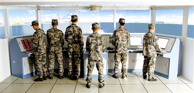 训练队队长葛祥对记者介绍,通过全天候的实景模拟,该中心可以进行船艇避让、夜航、雾航、狭窄水道航行、船艇编队及队形变换等训练课目,大大提高了模拟训练的针对性和实效性。