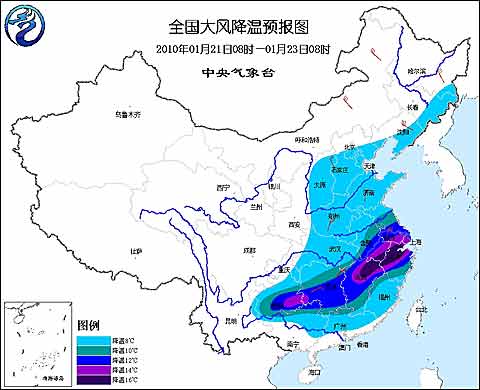 中央气象台1月21日06时发布寒潮蓝色预警: