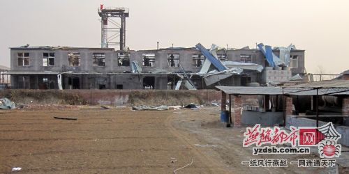 2月21日下午,记者赶往栾城县孟董庄村附近,看到发生爆炸的化工厂大门紧闭,门口并没有名字,隔墙可以看到里面一间厂房严重损坏,顶棚已被炸飞,七零八落地散落在厂内空地上。化工厂旁边建筑的玻璃大部分被损坏。