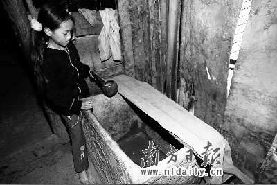 偏僻落后的牛角村,以种植畜养为主的原始经济遭遇强旱后,人均年收入已降至600多元。村里的一些年轻人本想外出打工,却遭遇入不敷出的困境。杨昌毅就曾到深圳做过两年保安,“每个月1200元工资,只能在当地养活我自己,我家里还有父母,两个小孩和老婆,根本划不来。”像杨昌毅这样在牛角村里已经算是能讲普通话、会认字的“文化人”。而记者在采访中了解到,更多的牛角村民连自己名字也不会写,普通话只能听懂一半。“他们出去打工,只能重复我的命运”,杨昌毅说,而且“每个星期都要下山挑水,没有年轻人在家,老人怎么办?” 南方日报特派记者谢庆裕
