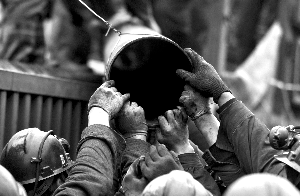 至昨晚记者发稿时,离事故发生已有30多个小时,王家岭矿透水事故中的153名被困人员仍无音讯。据下井的救援人员说,水面距离矿口约1000米,积水已没过巷顶。
