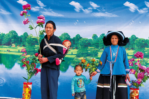 老人说他叫杨华爸,他在广东打工的儿子想念家中的两个孩子,昨天恰逢集市,杨华爸与老伴带着两个孙子到常么照相馆照相,以便寄给儿子。
