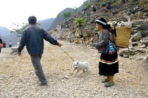 第一站,我到龙英,山路太难走了,摩托车根本不敢走。我只好靠双脚,一路上,除了出村背水的群众外,其他都是挑着小猪,或抱着猫狗,或牵着牛马……