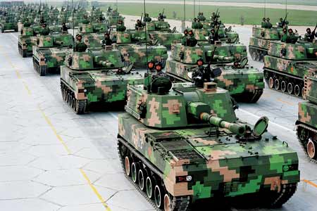 国庆60周年大阅兵30个装备车辆方队都有迷彩伪装:有浅绿和棕色的三色沙漠迷彩的坦克、装甲车;有海洋迷彩的舰舰、岸舰导弹车队;有草绿、黄色伪装的通信、雷达车队……五颜六色,五彩缤纷,迷彩伪装,大开眼界!