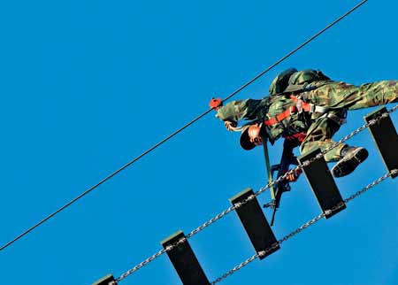 去年7月,这8名特战队员和兄弟单位的2名同志组成的参赛队,代表中国军人参加了斯洛伐克“安德鲁波依德”第14届国际特种兵竞赛,与美国、英国等8个国家派出的13支代表队展开了较量。在特战精英云集的国际竞赛场上,夺得了13个科目中的8个第一、6个第二、4个第三,以绝对优势囊括了金牌和奖牌总数第一的好成绩,在国际特种部队中引起强烈反响。