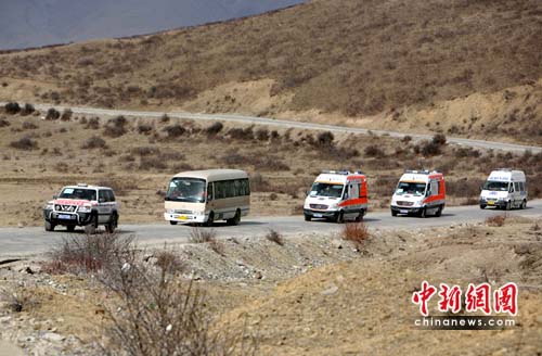 4月16日凌晨4:30分左右,车队终于抵达四川最远的县城石渠县,休整半小时后,车队出发离开四川赶往青海省玉树。经过1200余公里,40小时的长途跋涉,医疗救援车队终于在16日早晨7时左右平安抵达青海省玉树地震重灾区。