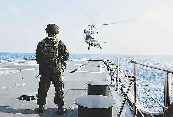 谈到具体应对措施,张文旦告诉笔者,为防止海盗袭击,编队灵活调整护航方式和队形,加强观察瞭望和值更值勤,做到尽早发现、尽早处置;实施特战队员随船护卫,加强了对被护船舶的安全指导;在海盗活动频繁海域适时提升反海盗部署等级,综合运用多种手段和护航方式,震慑海盗。