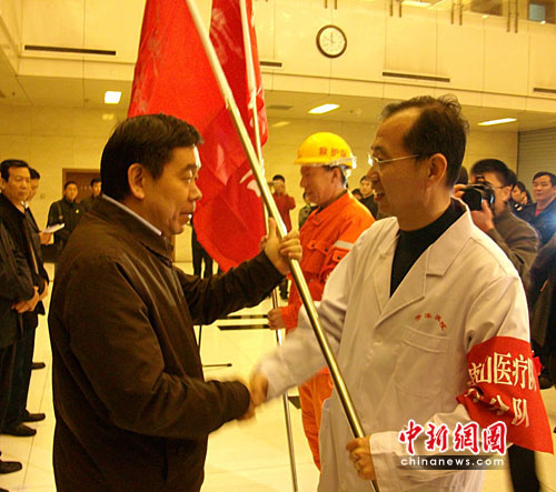 中新网唐山4月16日电(记者 白云水)16日,河北省唐山市市长陈国鹰站在雨中,挥手送别赴青海玉树灾区抗震救灾突击队的53名队员,期盼他们尽早把730万唐山人民的支持和帮助送给灾区民众。
