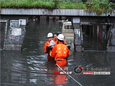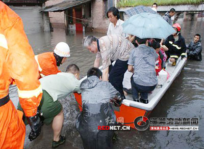 6日早上7时50分,新化消防大队接到报警,位于城区的立新桥社区,因雨水淤积,致使一整栋大楼的人员被困。大队人员在赶到现场后,立即开展救援活动,因缺乏救援船,中队指导员带领中队班长助理只身游过去查看情况,并救出有心脏病的老人。