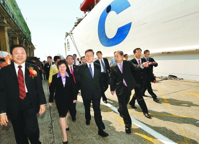 10日上午,两岸之间唯一一艘获批的常态化定期班轮——“中远之星”轮成功从厦门港首航高雄港。省领导黄小晶、陈桦、叶双瑜、苏增添一行出席首航仪式并鉴证厦门港务局与高雄港务局、厦门海沧保税港区与高雄自由贸易中心现场签署合作协议。初夏的高雄港海天一色、潮平浪阔,黄小晶一行登船出海,考察这一台湾最负盛名的天然良港。在与当地交通部门负责人交谈过程中,黄小晶说,“中远之星”轮继开通台中港、基隆港航线之后,再增加高雄港航点,首次开通厦门至高雄港客货滚装航线,创新了海峡两岸现有的海上运输模式,实现了真正意义上的客货直航。希望两岸能够携起手来,致力于推动更多的直航班轮实现常态化运营,特别要争取直航班轮与旅游精品线路和物流配送相结合,带动台湾南部与大陆之间在旅游业、农产品供销等方面更深入的交流,以实际行动为两岸同胞多谋福祉。