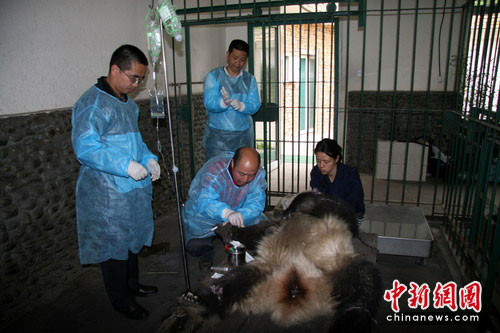 中新网成都5月11日电(杨菲菲 杨杰)记者11日从成都大熊猫繁育研究基地了解到,汶川地震后在北川发现的第一只野生大熊猫,目前经过专家为其紧急疗伤,生命体征已逐步趋于稳定,正在逐步恢复中。