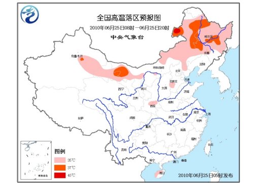 中新网6月25日电 中央气象台6月25日06时继续发布高温蓝色预警:预计,今天白天,甘肃西部、内蒙古大部、黑龙江大部、吉林西部和北部、河北东北部和西南部、陕西关中地区、海南中西部等地有35~37℃的高温天气,其中,内蒙古西部和东北部局地最高气温可达38℃以上。
