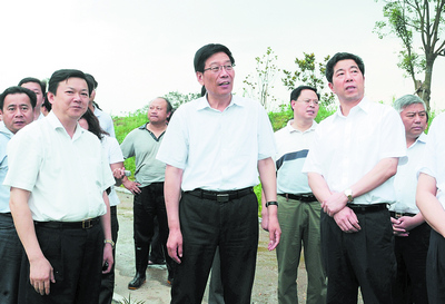 昨日(24日)下午,(湖南)省委副书记、代省长徐守盛在长沙督查指导防汛工作。他要求严防死守,做到人在堤在,确保25日上午洪峰安全过境,确保人民群众生命财产安全。省委常委、市委书记陈润儿,副省长徐明华,省政府秘书长盛茂林,市委副书记、市长张剑飞,市委常委、市委秘书长程水泉等参加督查。