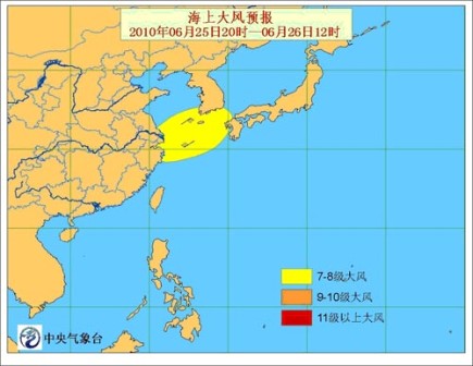 中新网6月25日电 据中国气象局网站消息,中央气象台今日18时继续发布海上大风预报。
