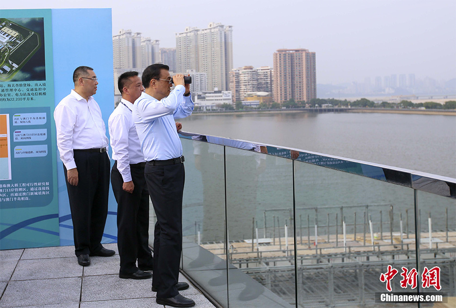 李克强考察港珠澳大桥施工进展和大桥澳门管理区口岸建设情况