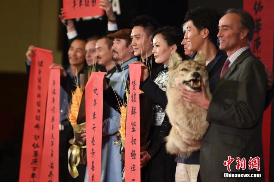 资料图:2月4日,电影《狼图腾》首映发布会在北京举行,该片导演让·雅克·阿诺、主演冯绍峰、窦骁、昂和妮玛等亮相推介影片。该片将于2月19日大年初一在全国公映。中新社发 廖攀 摄