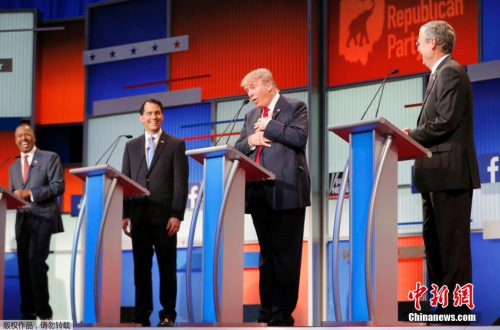 特朗普在辩论现场肢体语言丰富,非常抢镜。