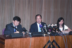 谭伯源(中)呼吁居民对澳门银行保持信心。(图片来源:澳门日报)