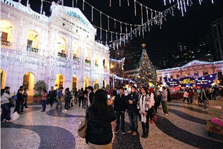中新网12月24日电 《澳门日报》今日在头条刊发报道称,今年平安夜遇上金融海啸,澳门部分行业生意会较去年减少,但不少居民趁节日假期与家人及朋友欢聚、购物,更有大批旅客圣诞期间来澳过节,中区街道人头涌涌。预计24日平安夜,在报佳音队伍与灿烂的圣诞灯饰衬托下,定会处处洋溢浓厚欢乐的节日气氛。