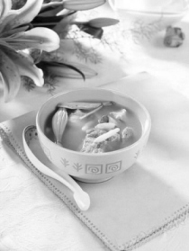 3.然后将瘦猪肉、银耳、黑木耳一同放入煮沸的汤锅内,大火煮10分钟后,改用小火煲1小时,放入适量食盐调味即可食用。