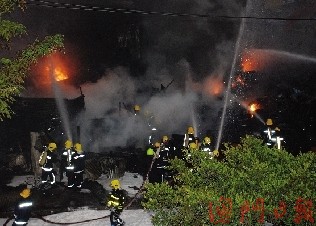 现场消息指,9日清晨近6时,有人发现旧轮胎回收场失火时,火势已十分猛烈。大批救援人员接报赶抵现场,消防员发现火场面积有20米乘30米,足有一个篮球场般大,火舌不断从场内喷出对面处的马路。