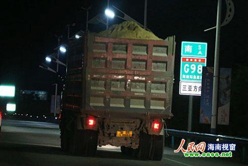 5月14日晚11点45分,一辆十轮卡将海砂运往三亚市区
