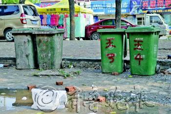 “买了垃圾桶,对方说定时清理,但一天过去了,现在还没见有人管。”有店主向记者抱怨。