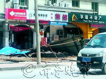在附近的刘先生说,当时他正和一个朋友坐在围挡下聊天。前方几米远处,一名30岁左右的女子推着童车往前走,童车里是一个三四岁的小孩。当时还有一名70多岁的老人走在附近。