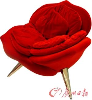 造型可见中国古代的鼎的形状,玫瑰花朵的靠背,给人软硬反差的奇特感受。