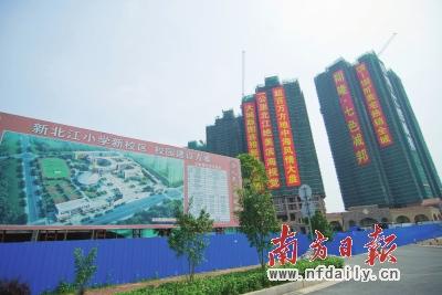 翔隆七色城邦靠近新北江小学(新校区)。借用教育资源优势为销售促销是开发商惯用的方式,许多人也愿意买账。 南方日报记者摄