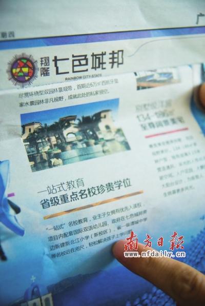 清远翔隆七色城邦购房送学位遭投诉 好似忽悠人