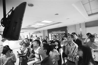 5月30日,北京市土地整理储备中心交易大厅正在进行现场竞价。今年北京土地市场一直处于升温通道之中。新京报实习生 翟超 摄