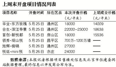 上周,北京楼市迎来了开盘小高潮。记者不完全统计显示,上周末(5月25日-5月26日),北京有6个项目开盘,是京版国五条细则落地以来开盘项目最多的周末。