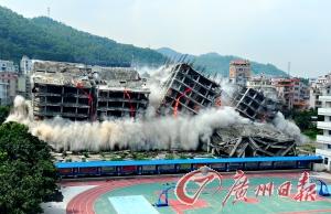 广州首次采用定向爆破方式清拆违建