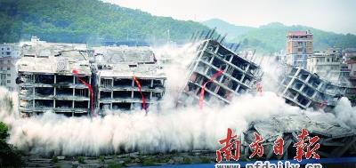 广州首次爆破拆除超大违建 四栋违建灰飞烟灭