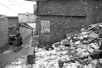 北京坝北村内垃圾如山 清运车遇翻盖房“阻路”