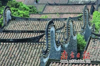 “千两黄金万担谷,富贵显达镬耳屋。”年过七旬的秦石生告诉记者,镬耳屋明清两代风行于岭南地区,最突出的是屋两边的镬耳,从檐口至顶端用两排瓦筒压顶并用灰塑封固,象征着官帽两耳,具有独占鳌头的涵义。因房屋两边墙上各筑起一个镬耳状的风火墙而得名。过去,许多大官或富豪往往通过建造镬耳屋来显示其富有,所以镬耳屋也蕴涵富贵吉祥、丰衣足食之意。