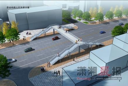 韶山南路人行过街天桥 架设两跨人行过街天桥