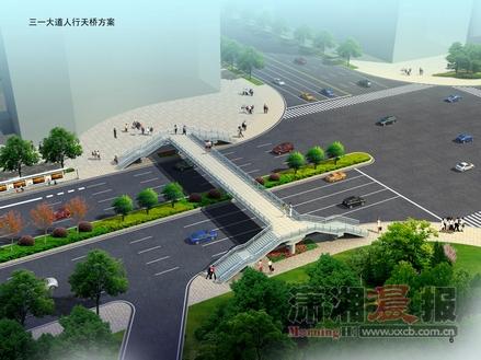 长沙市规划设计院设计师李权介绍,建人行天桥对正常的交通影响小,施工难度比地下通道相对小。过街天桥设计并不是“直来直去”,在主体结构上都考虑了拱形弧度的设计,视觉效果上更美观,天桥的扶手等处将安装照明灯。