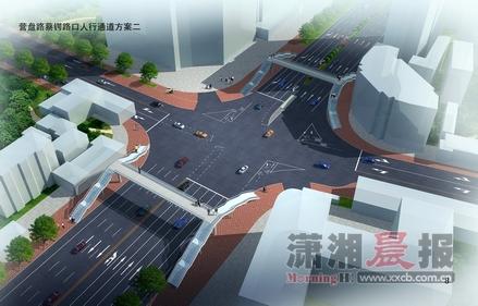 措施:长沙市规划设计院设计师拿出了“十”字形和“一”字形方案,将二选一。“十”字形方案,就是在营盘西路与蔡锷路交叉口建桥墩,然后旋转一定角度,直至让四个跨落在两条主干道上。这样从哪个方向看都是一个英文字母“X”型。“一”字型方案就是一跨过营盘路,脚落在营盘路南北两侧。