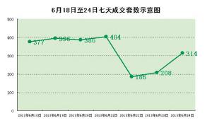 近期项目的推盘力度也在一定程度上促成了交易。继端午佳节一周成交情况出现小幅回落之后,6月18日至24日昆明楼市商品房交易量反弹重回2000套以上。据昆明市房产信息网统计数据显示,这七天昆明主城四区及呈贡新区共成交各类商品住房2271套,日均成交套数约为324套,其中单日成交最高为6月21日的404套,最低出现在6月22日,为186套。相较于上一个交易统计周期,此次成交套数增长529套,环比涨幅30.4%。成交面积方面也明显攀升。统计数据显示,这一周的总成交面积为21.86万平方米,环比增幅16.3%。