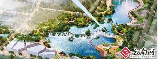据介绍,该项目位于盘龙江松华坝下游2.3公里,引水河道与盘龙江交汇处,西邻盘龙江、东倚北京路,呈东西向刀把形。公园东侧靠北京路南北向长约257米,西侧靠盘龙江南北向长约560米,东西向长约830米 ,净用地面积484.4亩,其中水面209亩。通过局部地形改造,公园内将形成瀑布直线幅宽300米、展开面长400米、瀑布过水面长340米、高差12.5米的巨型瀑布景观。项目估算总投资约10亿元,其中征地拆迁约4.5亿元,工程建设直接费用4.8亿元,建设内容包括场地整理、供排水管线改造、水体上下塘及瀑布、金汁河改道、配套建筑等方面。