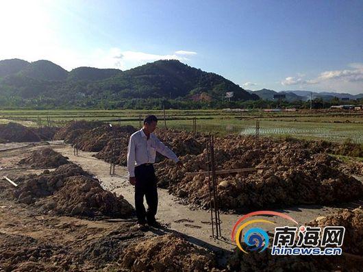 村民反映自家的农田里被人打地基准备建房子(南海网记者刘丽萍摄)