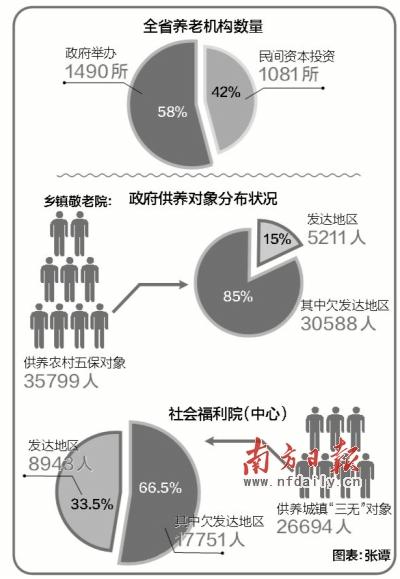 当前,全省2639家各类养老机构中,民办养老机构已达1081家,养老床位3.7万张,民办养老机构总投资18.12亿元。虽然政府举办的养老机构数量高于民办机构的总数,但多数集中在欠发达地区农村,城乡差别、地域差别大。