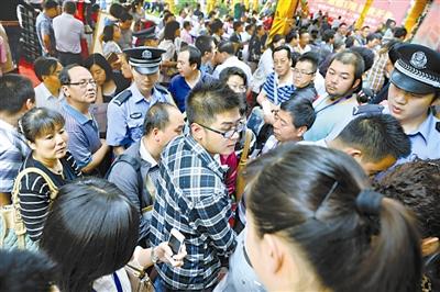 7月14日,甘肃兰州,拥挤不堪的售楼处门口一度出现混乱。当日,兰州一新楼开盘,近千名购房者蜂拥前往排号选房。近期内,兰州新开楼盘处处在上演火爆的场面。张向华 摄/东方IC