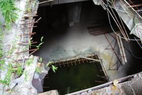房子主体上的铁支架还没有拆,空地上长满杂草,水泥搅拌机等一些器材已经生锈。