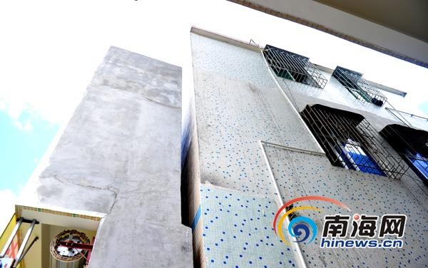楼房全长大约15米左右,但整个房子的厚度不到1.5米。(南海网记者秦彦摄)
