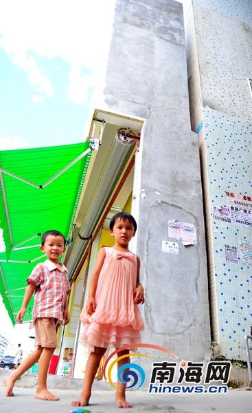 附近居民的小朋友在楼层底下玩耍。(南海网记者秦彦摄)