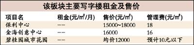 虽然该片区前景可观,但写字楼的供应量并不大,仅有金安大厦、联华大厦等少数项目,能够出租的也只有南海农商行办公楼等几个项目,而高端写字楼更是尚未出现过。