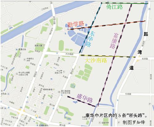康华中片区有在校学生近两万人,且紧邻大信商圈,但通向市区东部主干道起湾道的道路全部断头!昨日,记者从中山市人大了解到,黄健升等八位中山市人大代表提出建议《要求改造石岐区康华路片区交通道路》,该建议已经获得中山市住建局答复,康华中片区将首先开建勤学路,然后会尽快打通倚江路、大沙南路、盛华路,改变片区内通往起湾道均为断头路的现状,而东华路也将同时打通,届时,该片区的交通将彻底改观。